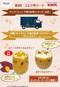 キリンビバレッジから午後の紅茶「オリジナルキッチンカー」が登場!川越いもや、紅赤芋みつを使用した『開運堂』とのアレンジティーを販売します。川越いもと午後の紅茶ミルクティーの相性を是非ご賞味ください!